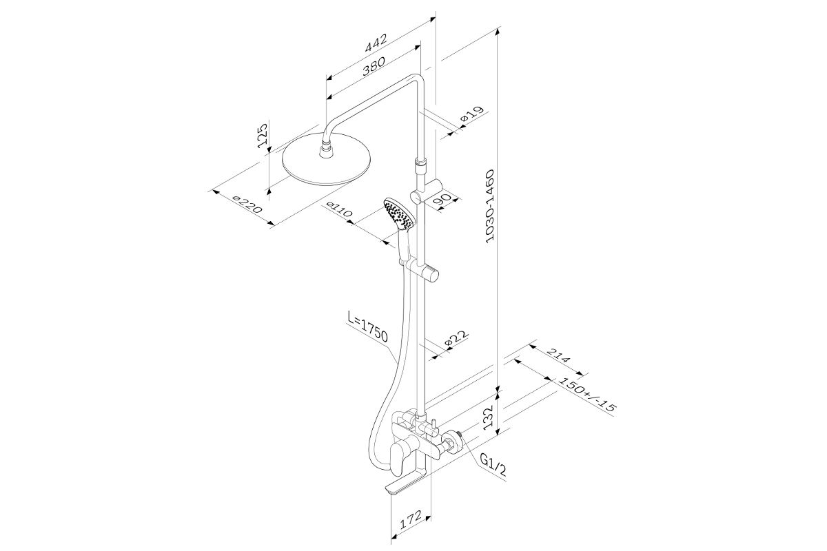 Премиальные размеры и продуманные детали: увеличенный диаметр душевых леек (верхний душ 220 мм и ручной душ 110 мм) позволит ощутить преимущества тропического душа тогда как увеличенная длина шланга 1750 мм обеспечит свободу движений во время принятия душа. Телескопическая поворотная штанга регулируется по высоте в диапазоне от 1030 до 1460 мм обеспечивая комфорт для людей любого роста а шаровый шарнир в держателе верхнего душа позволяет регулировать угол его наклона.