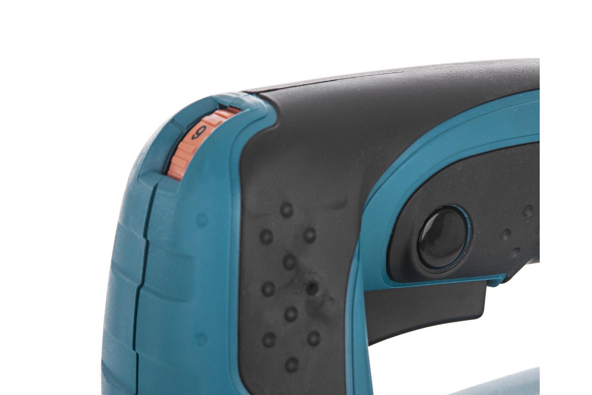 Корпус лобзика выполнен из прочного пластика. Эргономичная D-образная рукоятка имеет прорезиненные антискользящие накладки. Вес модели – 2 кг. Поставляется в удобном транспортировочном кейсе.